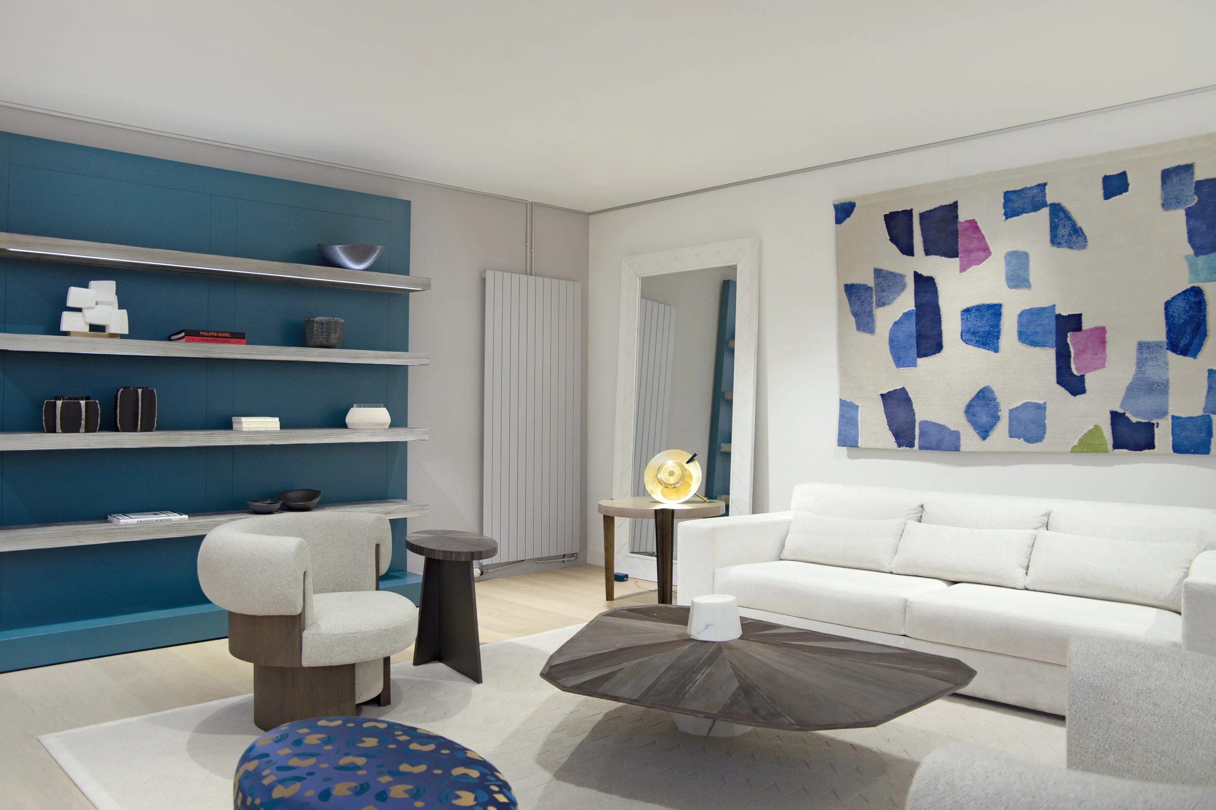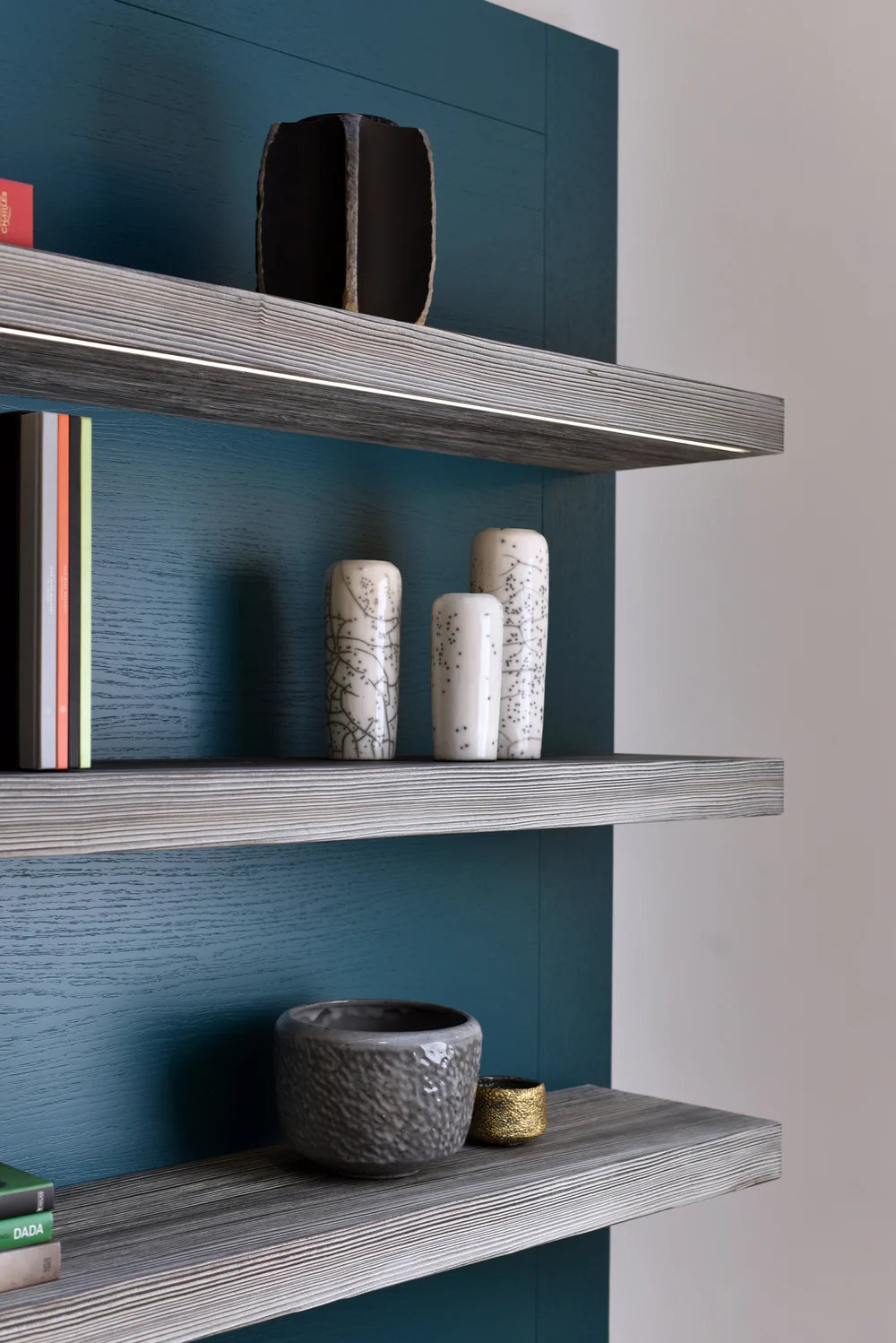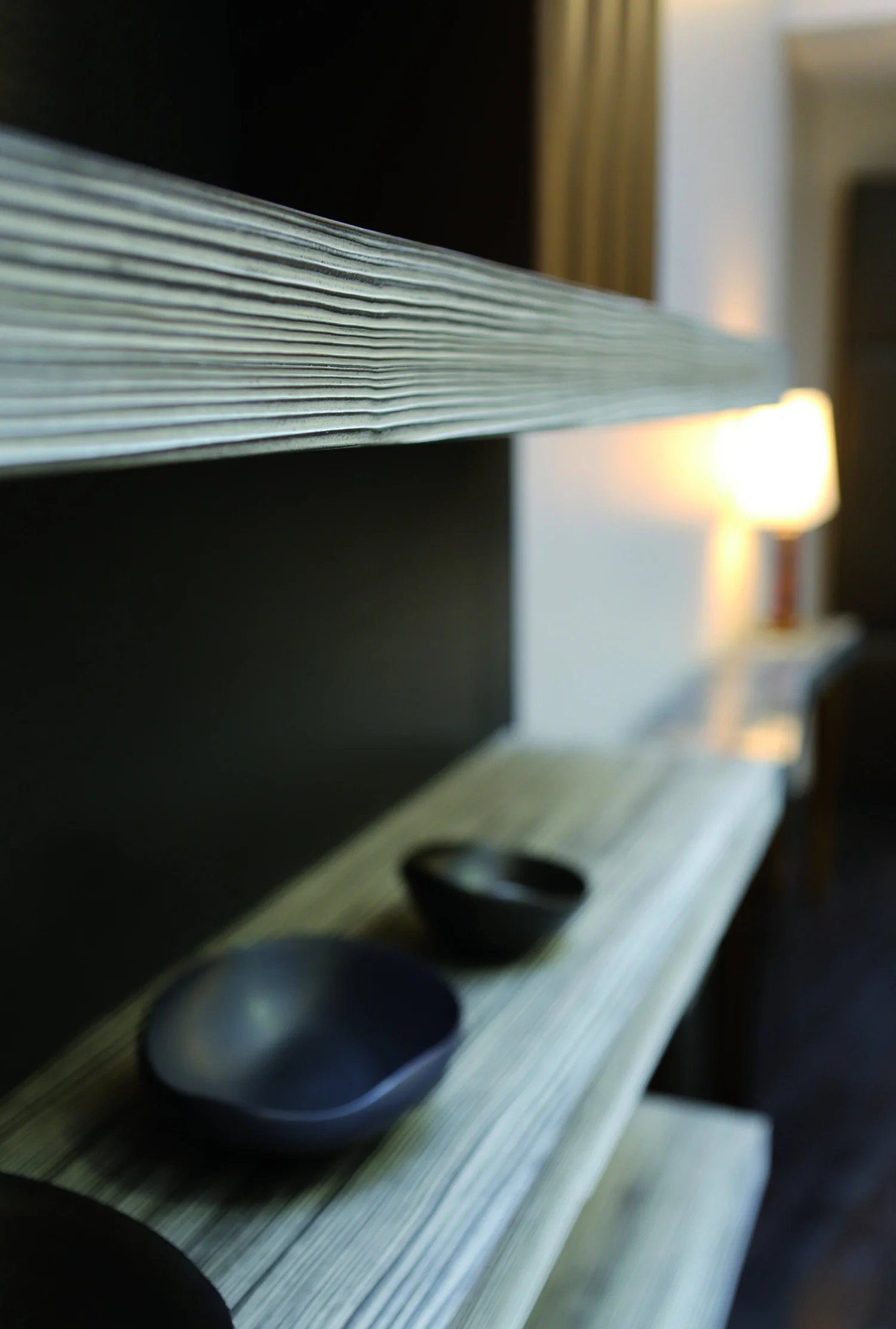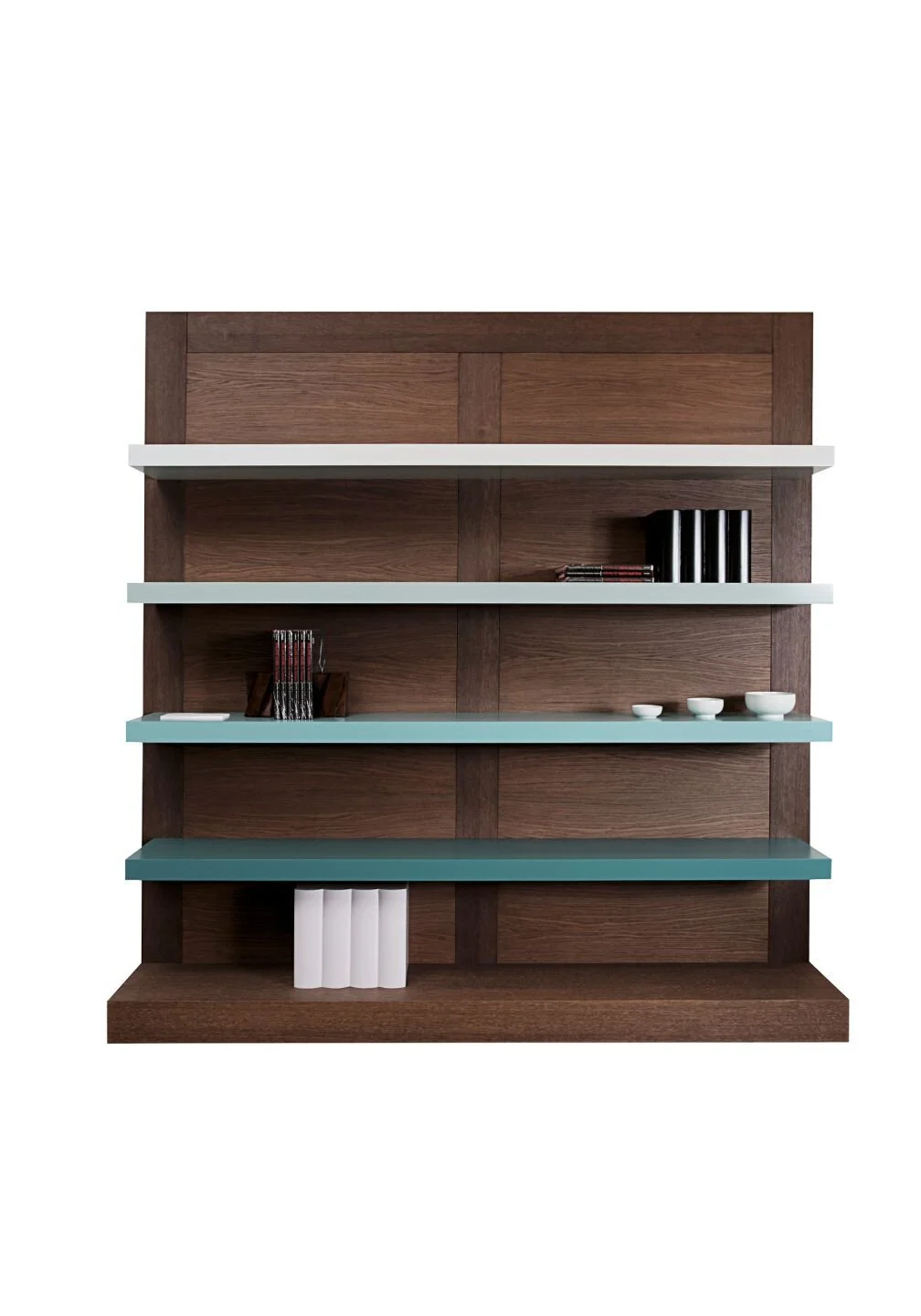 The Arabel Shelving System by Philippe Hurel showcases refined craftsmanship and understated elegance. Crafted in France, it features four shelves in brushed veneered oak, complemented by a striking back panel in sandblasted veneered oak that adds depth and texture. Optional integrated LED lighting and lower cabinetry allow for a tailored presentation and enhanced functionality, making Arabel a sophisticated storage and display solution for discerning interiors.