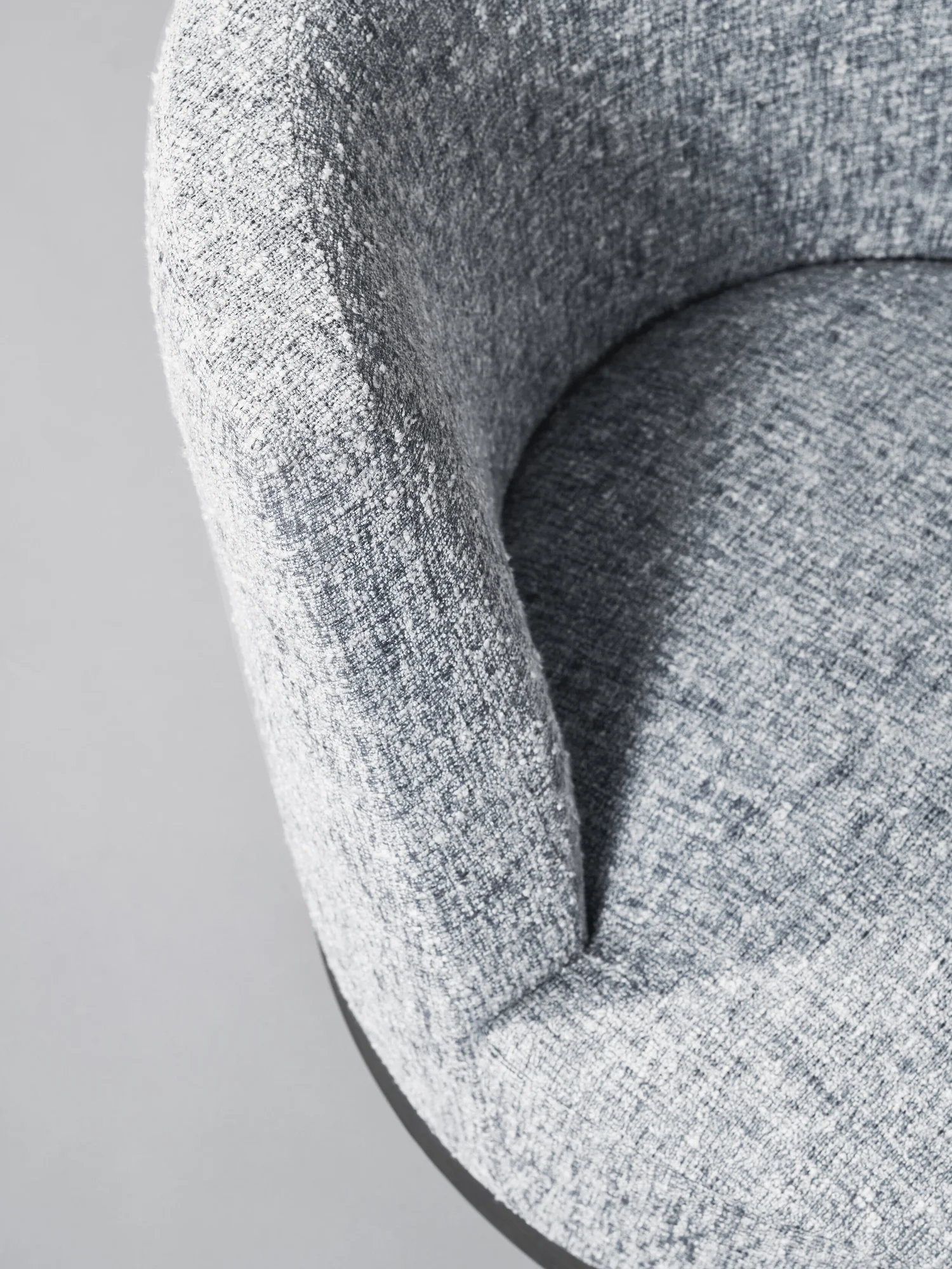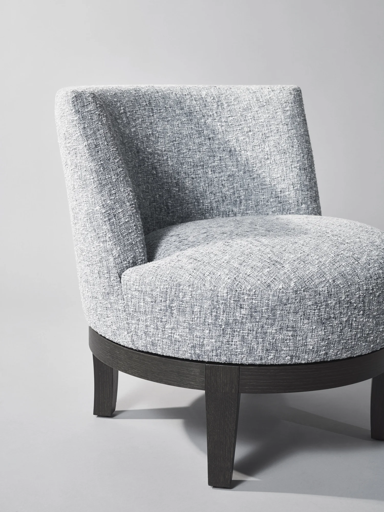 The concealed swivel base introduces a sense of effortless movement, allowing the chair to engage gracefully with its surroundings while maintaining a tailored, composed profile. Thoughtfully proportioned and impeccably crafted, it is equally suited to an intimate seating arrangement or a grand living space.
