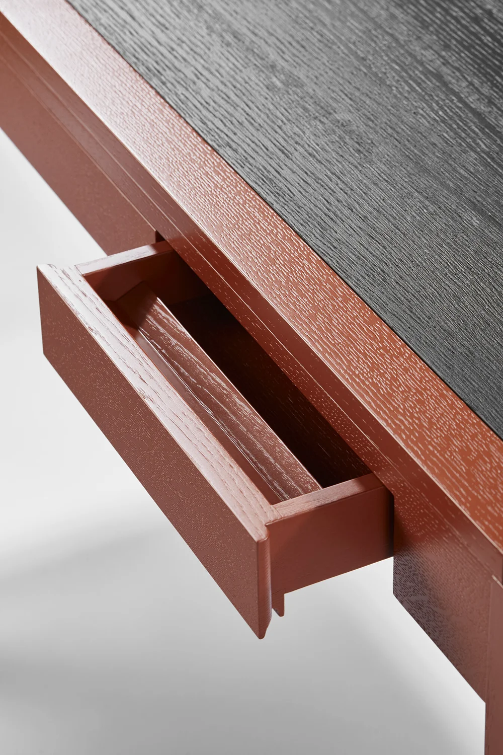 Three seamlessly integrated drawers provide discreet storage, preserving the desk’s clean architectural lines. Its elegantly tapering legs lend a sense of lightness and poise, balancing strength with sophistication.