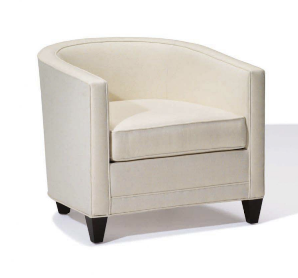 The Normandie II Club Chair by Philippe Hurel showcases a refined barrel-shaped silhouette that envelops the sitter in comfort while maintaining a sense of tailored sophistication. A plush loose seat cushion enhances its inviting feel, while the sculpted legs, crafted from stained beech wood, provide a subtle architectural elegance. Meticulously made in France, this piece reflects a harmonious balance of craftsmanship, proportion, and timeless design, ideal for a discerning interior. Width 27" Depth 27.5" Height 25" Seat Height 15.5"