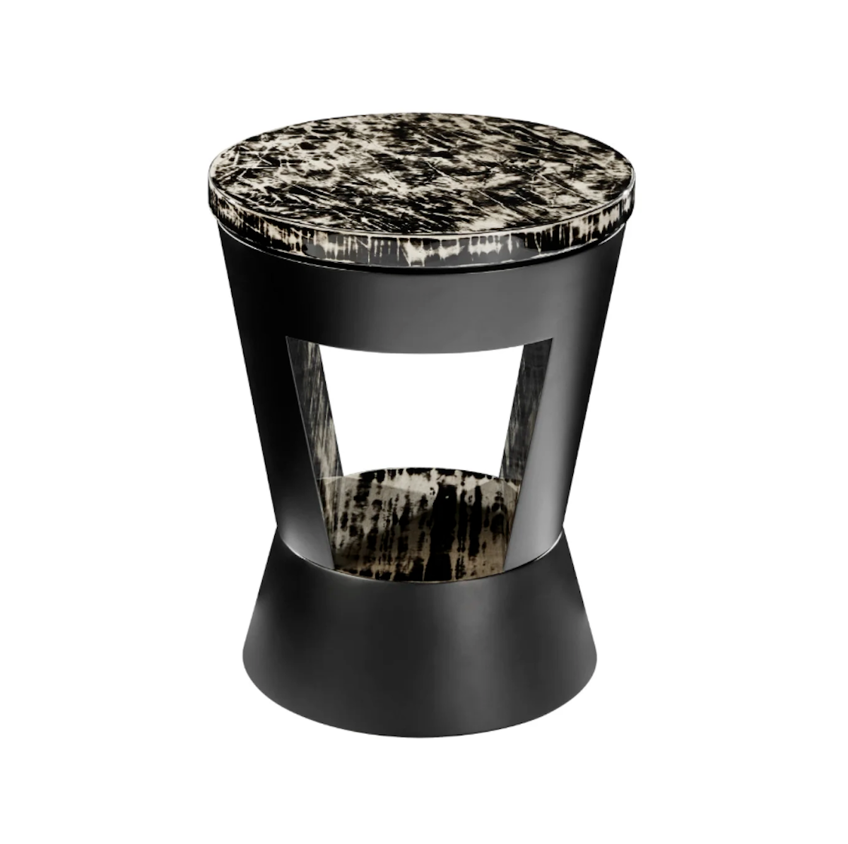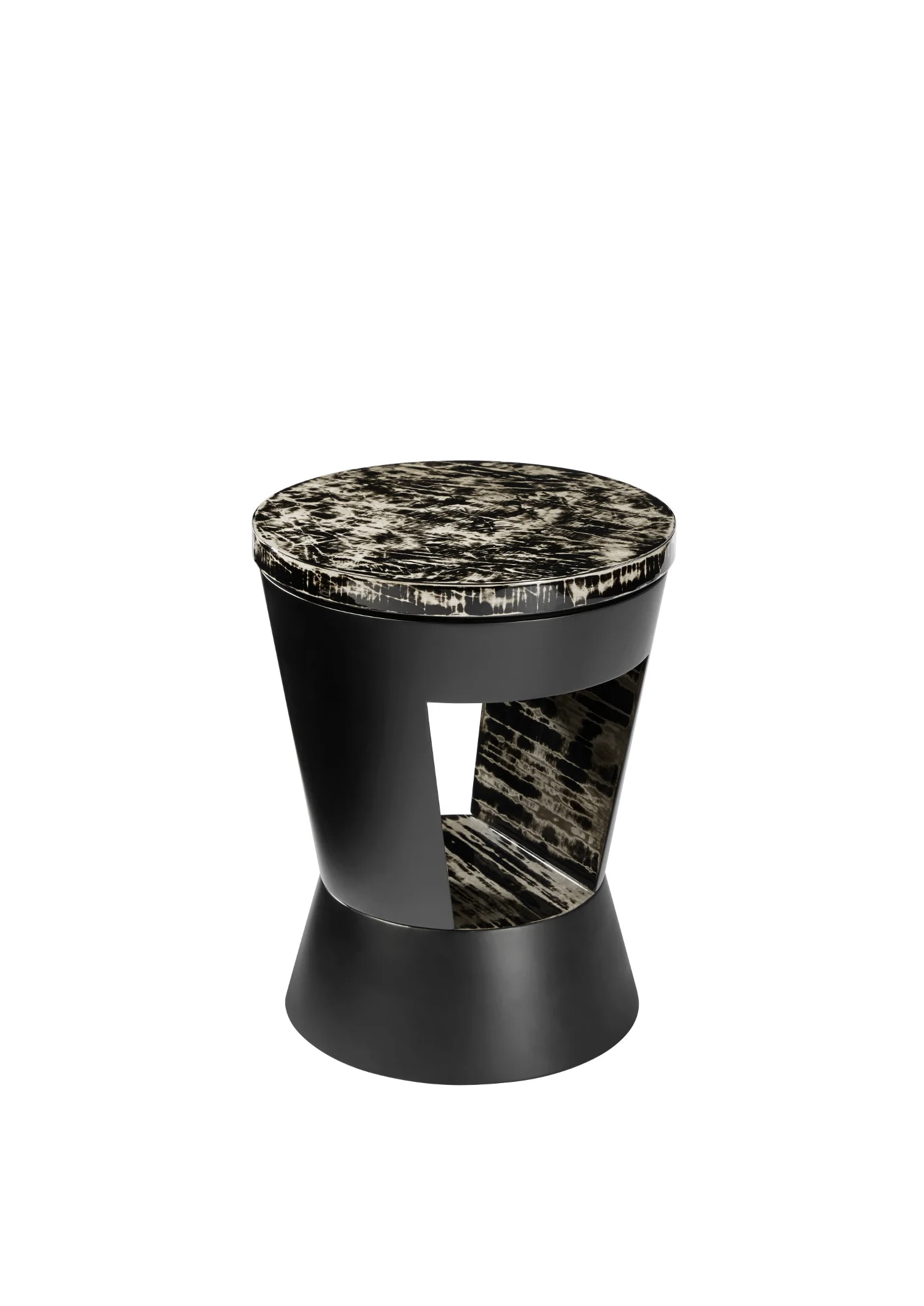 The exterior is finished in a contrasting matte lacquer, offering a subtle, velvety texture that enhances the table’s sculptural presence. This interplay of sheen and softness creates a sophisticated visual tension, elevating the piece beyond the ordinary.