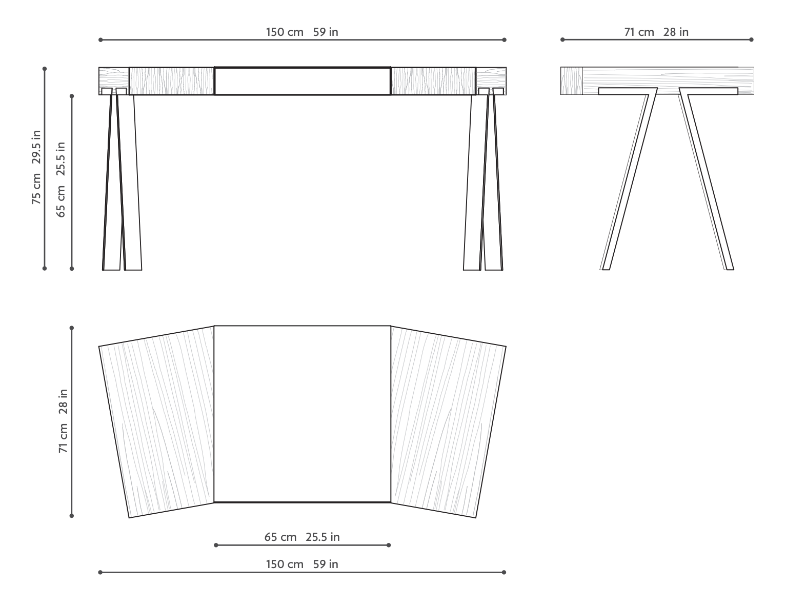 Depth 28" Height 29.5"Sven Desk by Philippe Hurel