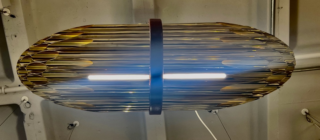 The Ellis Chandelier by Studio Van den Akker is a refined study in form and illumination, composed of stacked, angle-cut tubes that emit a soft, ambient glow from within, complemented by a dedicated uplight. An optional integrated LED strip at the base provides focused downlighting, offering both atmosphere and functionality.