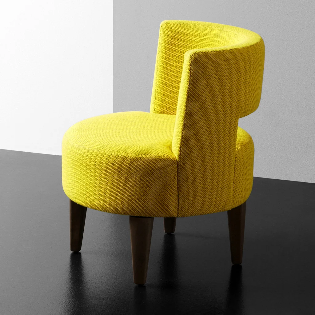 The Tomo Swiveling Slipper Chair by Philippe Hurel is a study in restrained elegance and architectural clarity. Its graceful, low-profile silhouette is supported by a meticulously crafted frame and legs in solid beech wood, selected for its strength, durability, and refined grain.