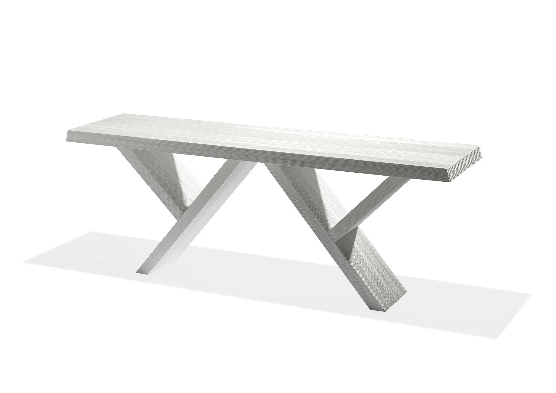 The Victoria Console Table by Philippe Hurel is a refined expression of material sophistication and architectural balance. Crafted with both top and base in sandblasted larch wood, the piece reveals a richly tactile surface that highlights the natural grain while lending a subtle, contemporary softness to its silhouette.
