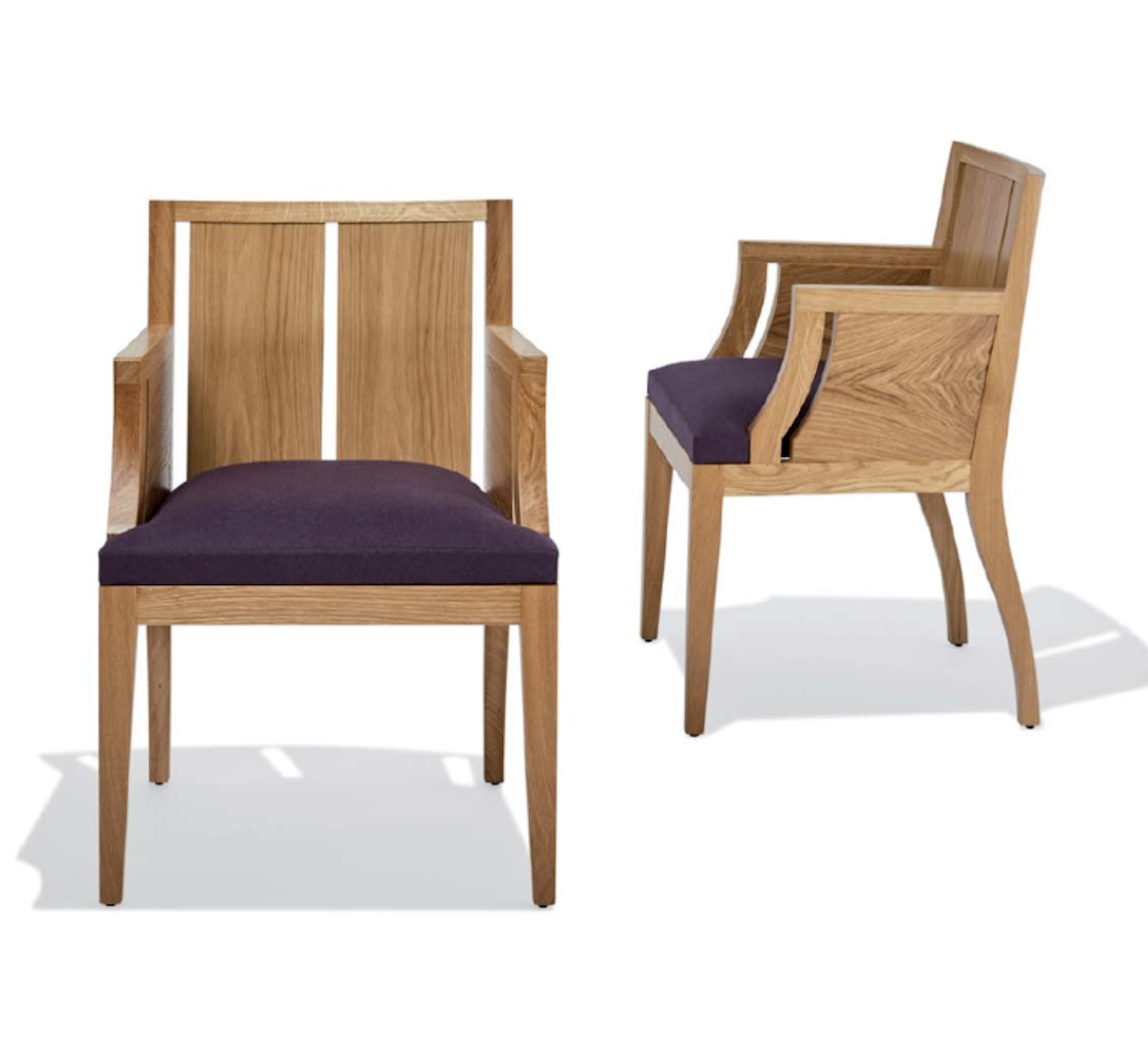 A tight upholstered seat lends a clean, structured silhouette while providing a comfortable and supportive seating experience. Elegant in its proportions and versatile in its design, the Wallis Arm Dining Chair is well suited to both contemporary and classic dining environments. Made in France.